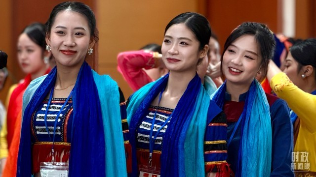 △当地青年身着民族服装等待迎接习近平总书记。(总台央视记者谢晓光拍摄)