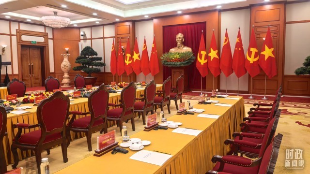△中越两党总书记会谈开始前。(总台央视记者刘琦拍摄)
