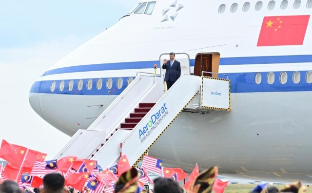 当地时间4月15日晚,国家主席习近平乘专机抵达吉隆坡,应马来西亚最高元首易卜拉欣邀请,对马来西亚进行国事访问。