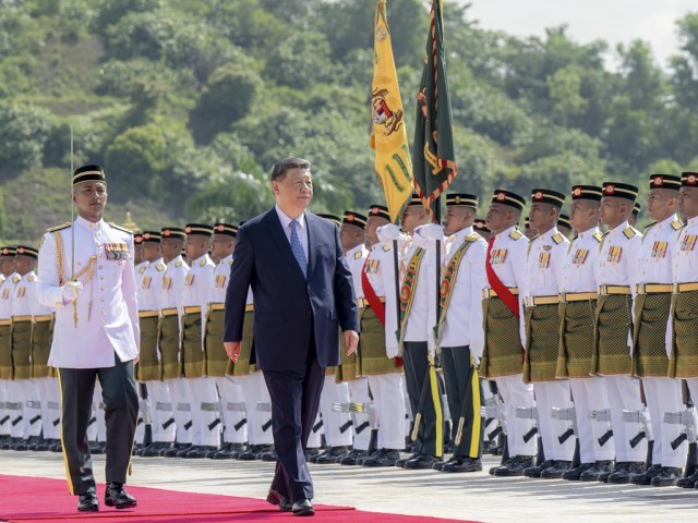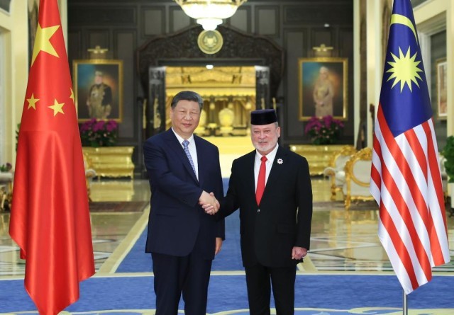 4月16日上午,易卜拉欣在马来西亚国家王宫广场为习近平举行隆重欢迎仪式。