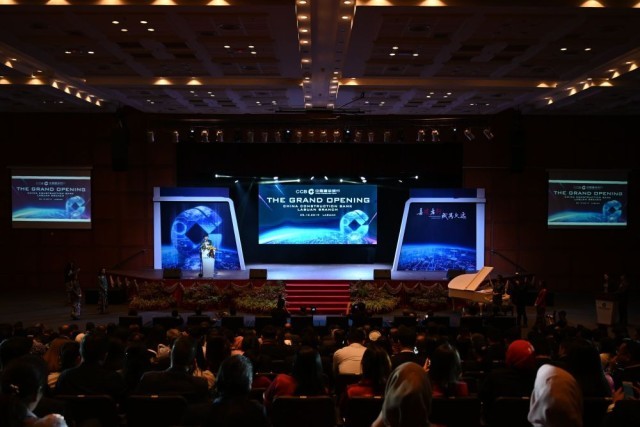 2019年10月25日,中国建设银行纳闽分行在马来西亚纳闽开业,该分行获得了马来西亚首块数字银行牌照和中国建设银行在东南亚首张人民币清算行牌照。这是开业仪式现场。