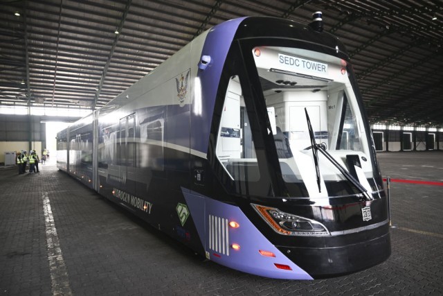2023年,由中车株洲电力机车研究所有限公司自主研发制造的氢能源智轨电车在马来西亚沙捞越州古晋市开启试跑。
