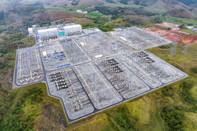 这是2022年9月30日在巴西里约热内卢拍摄的美丽山特高压输电二期项目里约换流站(无人机照片)。新华社记者 王天聪 摄