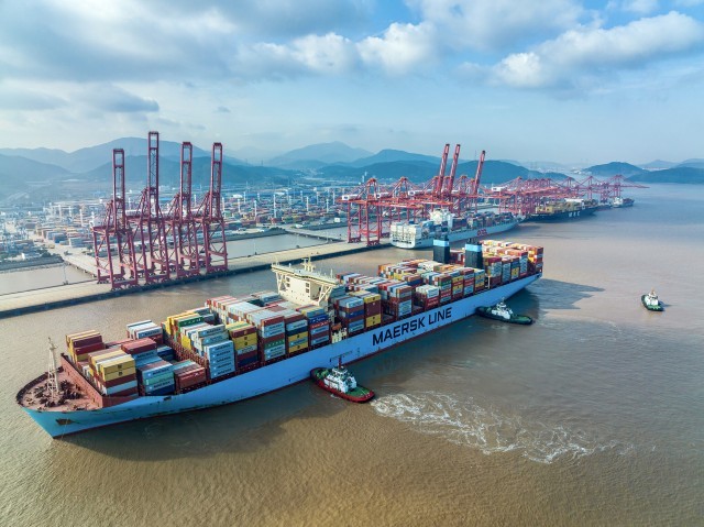集装箱船靠泊宁波舟山港穿山港区。拍友 汤健凯 摄