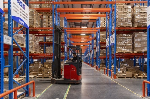 金华金义综合保税区内,工人正在对跨境商品进行分拣搬运。拍友 胡肖飞 摄