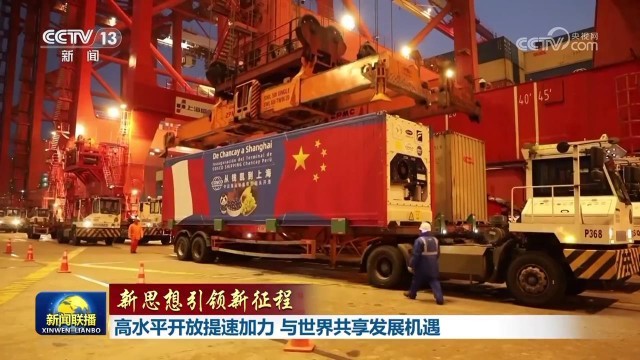 央视网消息(新闻联播):习近平总书记强调,中国将继续推动高质量发展,扩大高水平对外开放,同各国分享发展机遇,为地区乃至世界经济带来更多稳定性和确定性。今年以来,我国依托超大规模市场优势,在扩大国际合作中提升开放能力,不断拓展经济发展新空间,与世界共享发展机遇。