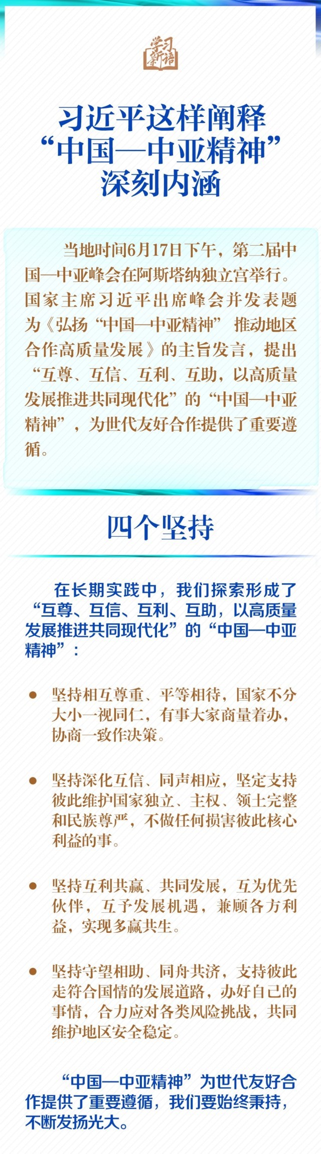 学习新语|一图学习!习近平这样阐释“中国—中亚精神”深刻内涵