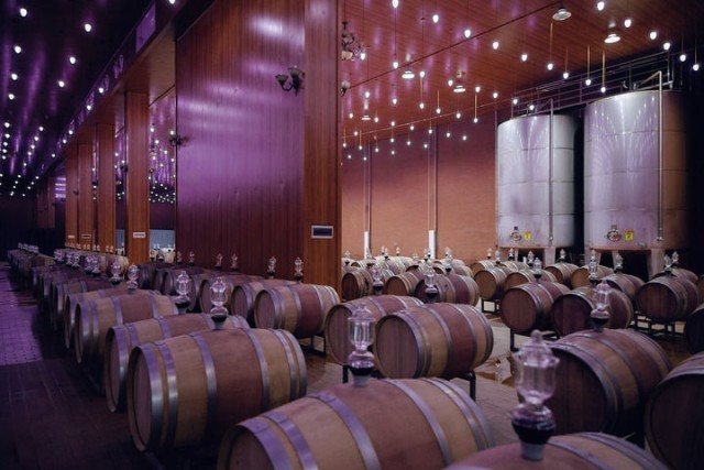 闽宁镇贺兰神酒庄酿酒车间的橡木桶。(永宁县委宣传部供图)