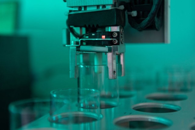 2025年6月18日,在黑龙江省双鸭山市的中国水稻研究所北方水稻研究中心,科研人员操控土壤有机质分析机器人分析黑土中的有机质含量。