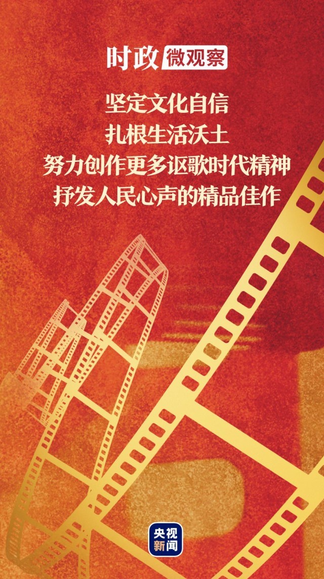 总书记在回信中寄语:“新征程上,希望你们继续在崇德尚艺上作表率,带动广大电影工作者坚定文化自信,扎根生活沃土,努力创作更多讴歌时代精神、抒发人民心声的精品佳作,为繁荣发展文艺事业、建设文化强国作出新贡献。”