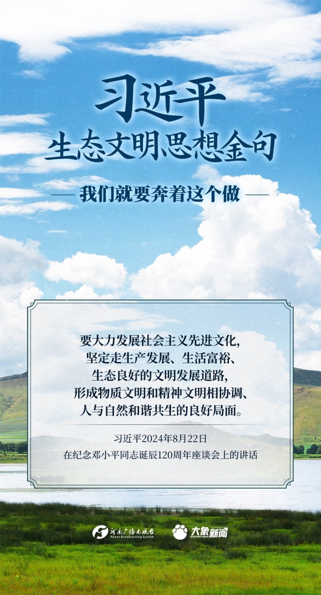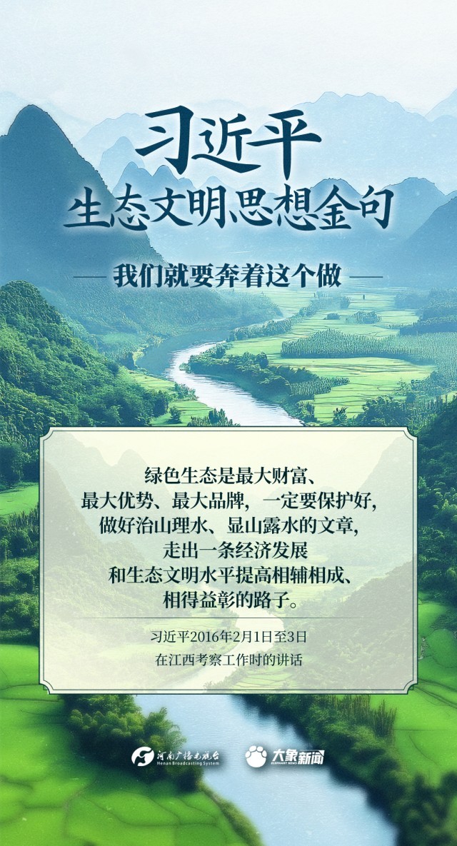 党的十八大以来,习近平总书记把生态文明建设摆在治国理政突出位置,大力推动生态文明理论创新、实践创新、制度创新,创造性提出一系列新理念新思想新战略,形成了习近平生态文明思想,对生态文明建设的时代之问、世界之问、人民之问作出科学解答。大象新闻推出《习近平生态文明思想金句》系列策划,今天推出《我们就要奔着这个做》。
