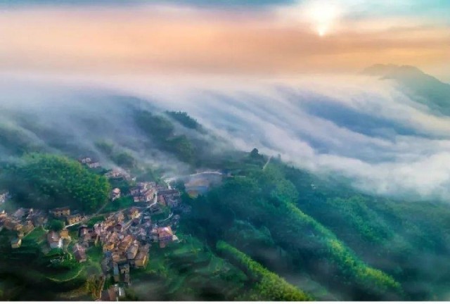 丽水松阳县陈家铺村地处高山悬崖,常年云雾缭绕,风景怡人(资料照片)。拍友 凌齐亮 摄