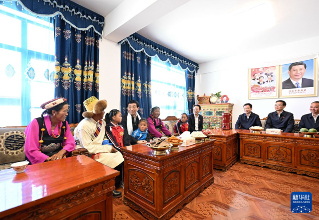 中共中央政治局委员、中央统战部部长、中央代表团副团长李干杰带领阿里分团来到阿里地区噶尔县扎西岗乡典角村村委会,了解固边兴边富民行动和铸牢中华民族共同体意识工作开展情况等。在阿里地委大院,李干杰一行看望慰问阿里地区领导班子成员及各族各界代表并合影。随后,代表团前往社区、学校、产业园、医院,了解脱贫攻坚成果巩固拓展、基层治理、教育援藏、农业发展、医疗卫生事业等情况。李干杰表示,要深入推进兴边富民、稳边固边,引导各族干部群众不断增进“五个认同”,促进各民族交往交流交融,把改善生产生活条件、发展高原特色优势产业、加强生态文明建设、做好新时代对口援藏工作等落实落细,让各族人民共享中国式现代化建设成果。