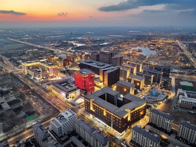 雄安商务服务中心夜景(2025年3月15日摄,无人机照片)。新华社记者 牟宇 摄