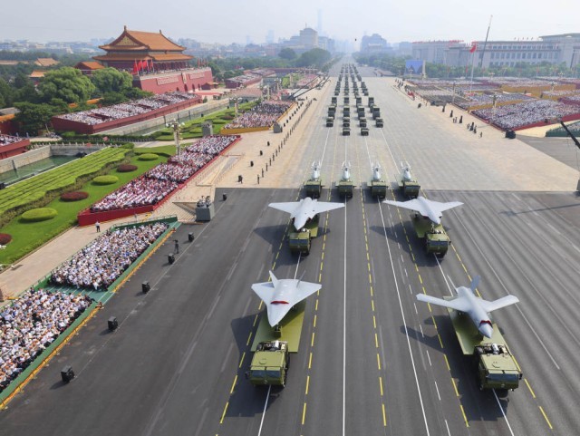 铁流滚滚、战鹰呼啸,由1万余名官兵、80面战旗、数百台(套)地面装备和上百架飞机组成的45个方(梯)队在天安门前接受检阅;招待会中,中外嘉宾齐聚,为胜利与和平举杯;文艺晚会上,震撼人心的演出,将人们带回气壮山河的抗战岁月……