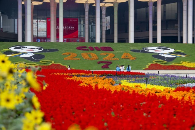 2024年11月4日拍摄的第七届中国国际进口博览会举办场地——国家会展中心(上海)外景。新华社记者 王翔 摄