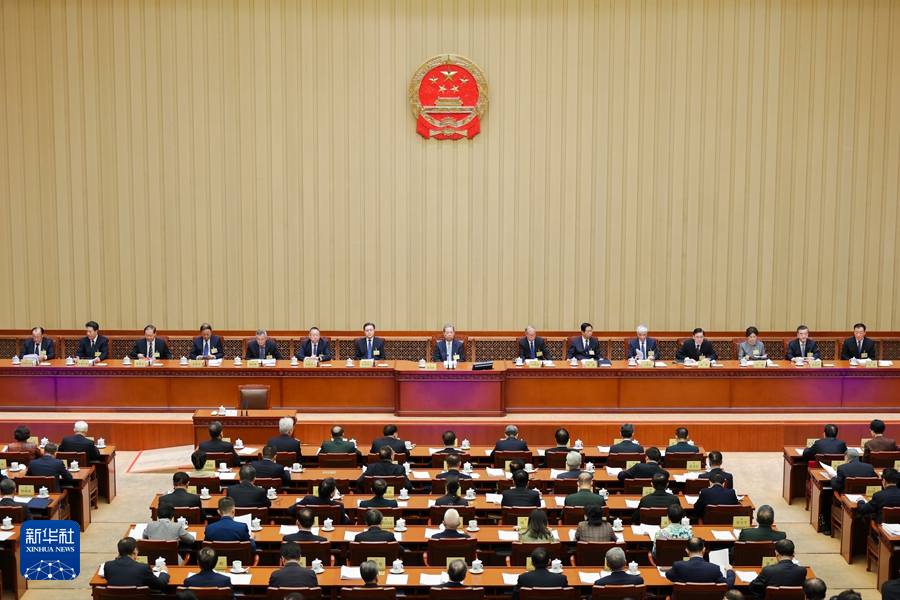 10月26日上午,十四届全国人大常委会第十八次会议在北京人民大会堂举行第三次全体会议。赵乐际委员长出席。新华社记者 刘彬 摄
