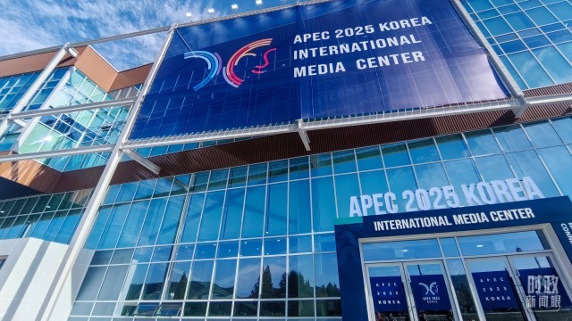 △APEC新闻中心。(总台央视记者王萌萌拍摄)