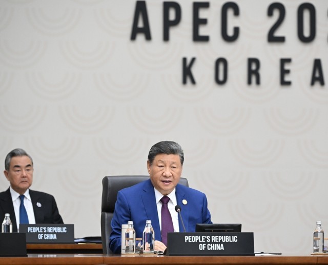 当地时间11月1日上午,国家主席习近平在韩国庆州出席亚太经合组织第三十二次领导人非正式会议第二阶段会议,并发表题为《共同开创可持续的美好明天》的重要讲话。