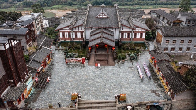 1934年12月15日,中央红军攻占入黔第一城——黎平城,在此召开了红军长征以来首次中共中央政治局会议。这是贵州省黔东南苗族侗族自治州黎平会议纪念馆(2021年10月15日摄,无人机照片)。