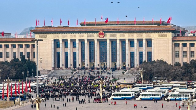 △2025年3月5日,十四届全国人大三次会议开幕,代表们陆续抵达人民大会堂。(总台央视记者周倜拍摄)