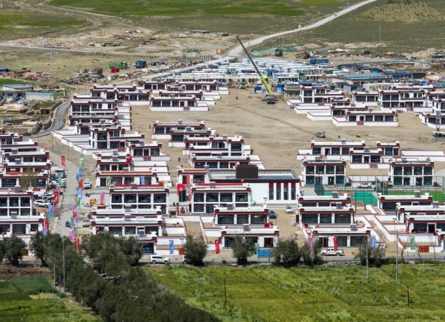 这是新建成的西藏定日县森嘎村(无人机照片,8月14日摄)。8月15日,西藏日喀则市定日县森嘎村举行“定日6.8级地震灾后恢复重建民房首批入住仪式”。伴随着哈达与祝福,包括定日、拉孜、萨迦等县首批2578户12139名受灾群众正式搬入安全舒适的新居。新华社记者 姜帆 摄