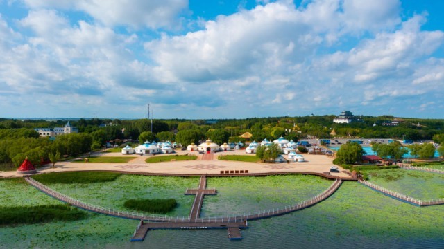 2023年9月19日拍摄的查干湖生态水岸。近年来,查干湖不断完善旅游基础设施,创新产品供给,构建起“渔猎体验+冰雪运动+特色消费”的完整产业链条,让冰雪渔猎这一古老文化IP持续“破圈”,实现从“一日节庆”到“一季活动”,从单一捕鱼到“观冬捕、赏民俗、玩冰雪、品美食”的生动转变,释放冰雪经济“热动能”。
