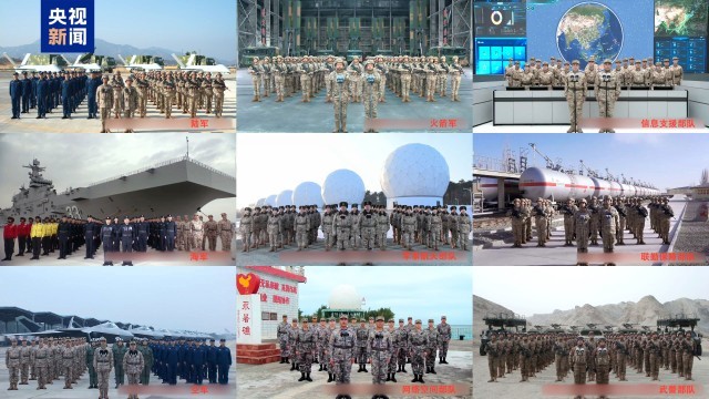 下午4时许,习近平来到八一大楼,同来自各军兵种和武警部队的9个单位视频通话。陆军某旅2营、海军安徽舰、空军航空兵某旅、火箭军某旅、军事航天部队某部、网络空间部队某部、信息支援部队某中心、联勤保障部队某仓库、武警部队某支队,依次向习主席报告战备值班和执行任务情况。习近平认真听取汇报,同他们亲切交流。看到官兵精神饱满、士气高昂,在各自岗位上扎实练兵备战,习近平给予充分肯定,勉励大家狠抓实战化练兵,用好手中武器装备,提高部队战斗力建设和运用水平。