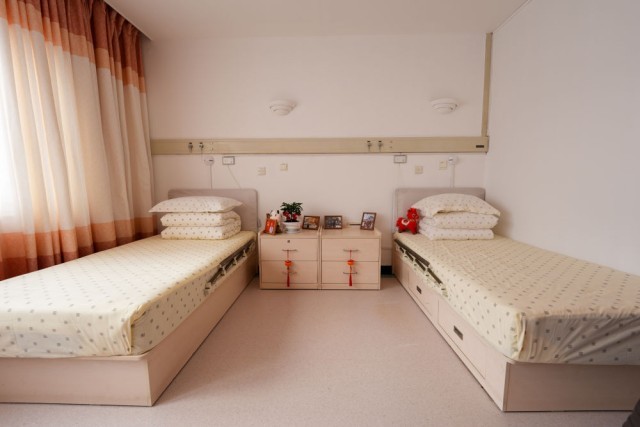 2月10日拍摄的银龄老年公寓房间内陈设。