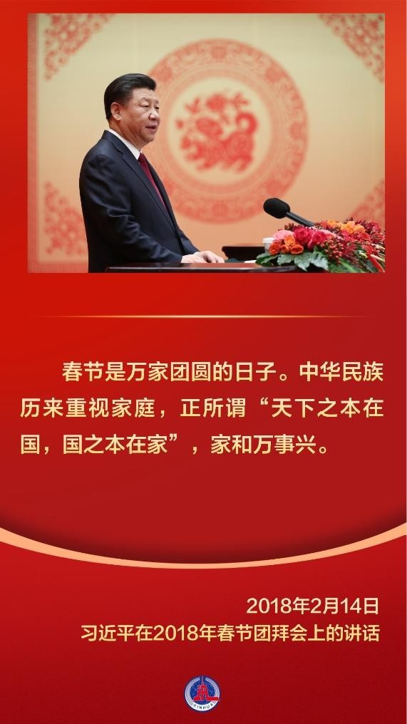 家是最小国,国是千万家。中华民族历来重真情、尚大义,在春节这样一个万家团圆的美好时刻,习近平总书记以家国之情凝聚起亿万人民家国一心的奋进力量。