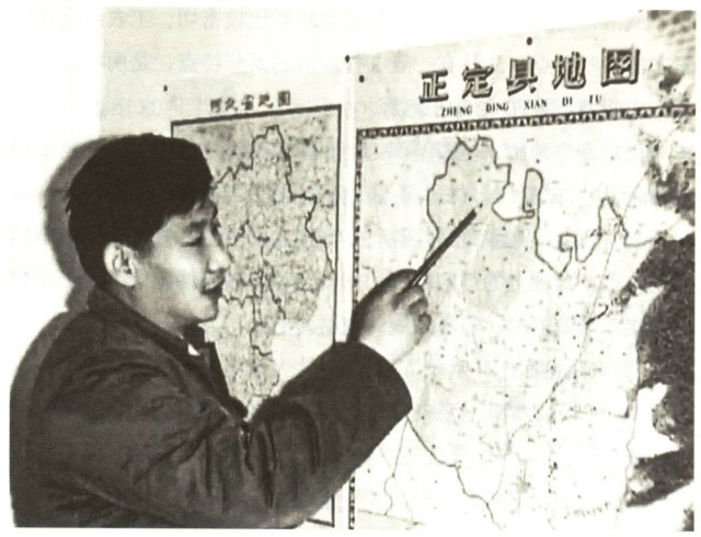 年轻的习近平在办公室地图前谋划正定的发展。