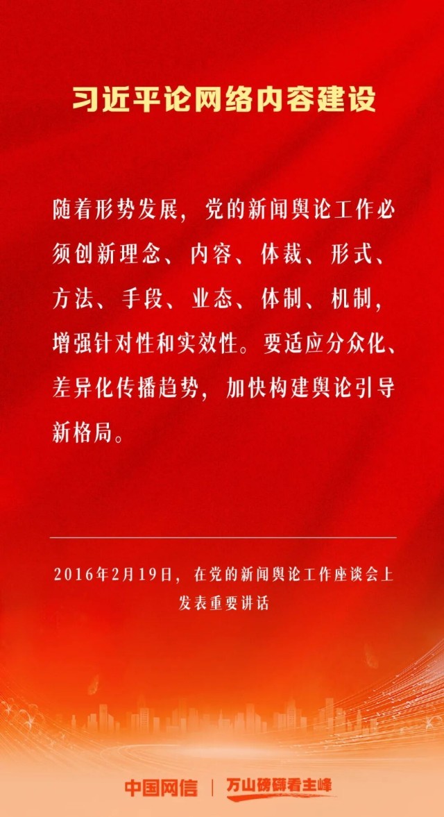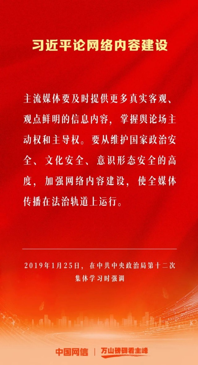 “明者因时而变,知者随事而制。”党的十八大以来,习近平总书记站在时代和科技前沿,准确把握数字化、网络化、智能化深入发展的时代大势,深刻阐明了网络内容建设和管理工作的重要地位、机遇挑战、任务要求等。这一系列重要论述是习近平文化思想和习近平总书记关于网络强国的重要思想的重要组成部分,为做好新时代网络内容建设和管理工作指明了前进方向、提供了根本遵循。《中国网信》杂志整理习近平总书记相关重要论述,与你一起回顾学习。