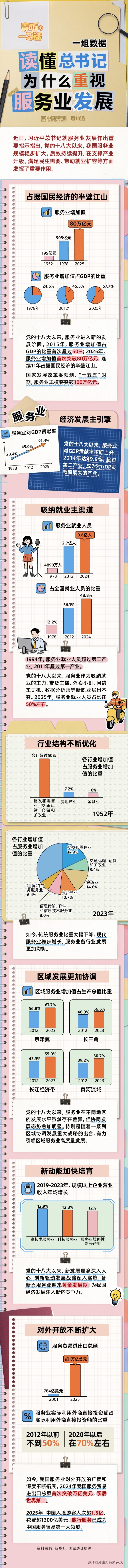 从生产到生活,服务业为经济高质量发展提供坚实支撑。近日,习近平总书记就服务业发展作出重要指示。让我们用一组数据,看“服务”里蕴含的生产力。