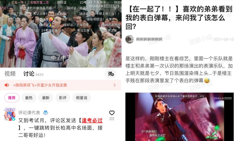 “用户把优酷弹幕区当做树洞的传统,其实很早就存在了。”优酷互动运营工作人员介绍,今年春节前夕,《乡村爱情15》上线后,很多粉丝都在弹幕区分享返乡过年和家人团圆的喜悦;甚至两年前,还有网友在综艺节目里弹幕告白,最后线下牵手成功。工作人员还介绍,平台也会根据用户的情绪,推出新功能满足用户普遍性的需求,今年考试季,不少网友在《知否》盛长柏中举的名场面弹幕互动,希望能考试通过,优酷随即上线了“一键逢考必过”功能,用户评论关键词就能直达名场面在线许愿。