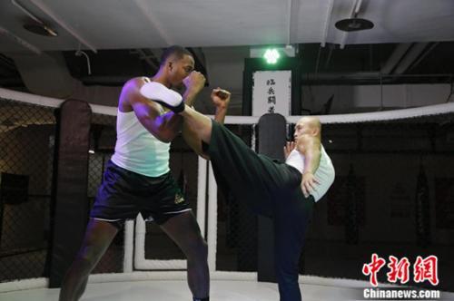 霍华德与武僧一龙在格斗八角笼中展开激烈竞技图