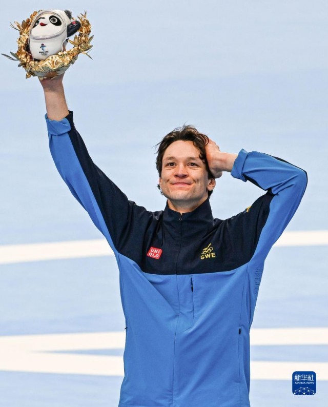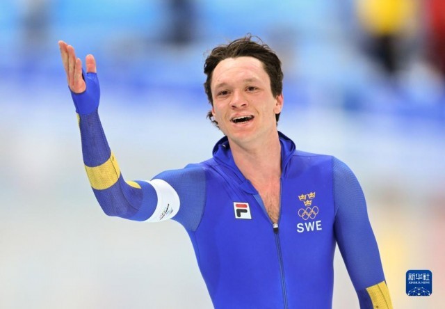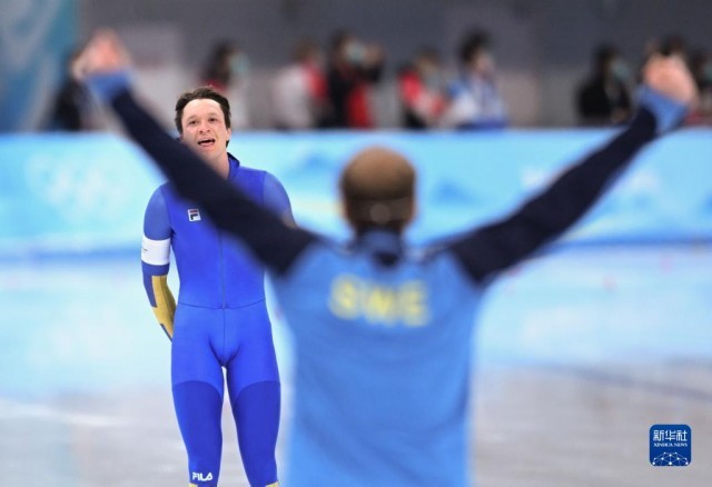当日,北京2022年冬奥会速度滑冰男子10000米比赛在国家速滑馆“冰丝带”举行,瑞典选手尼尔斯·范德普尔获得冠军。