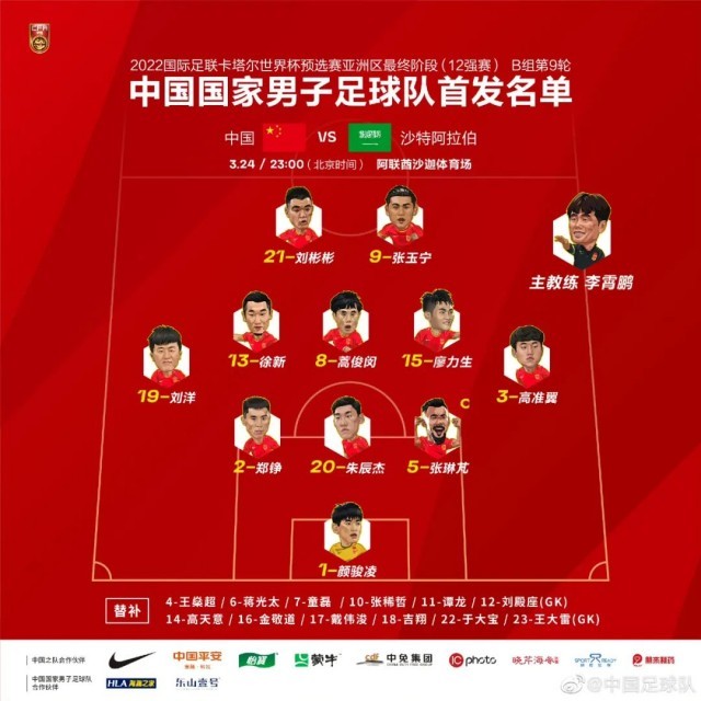 首发阵容。图片来源:中国足球队