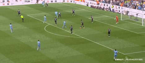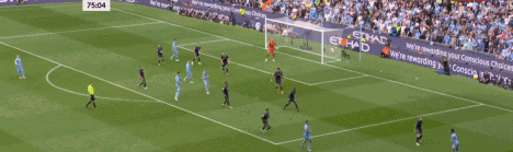 第76分钟,斯特林右路突破下底传中,京多安后点力压防守球员头球攻门,曼城扳回一城。
