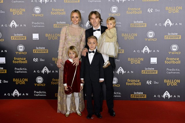 2018金球奖颁奖典礼,莫德里奇与家人。