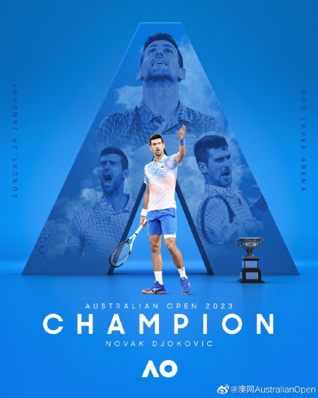 德约科维奇夺得澳网男单冠军。 图片来源:澳网官方社交媒体