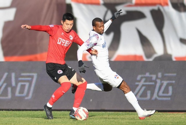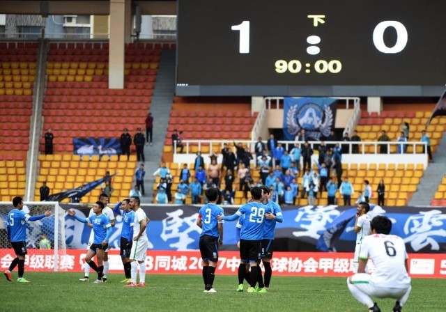 2019年10月26日,在2019赛季中国足协甲级联赛第29轮比赛中,辽宁沈阳宏运队主场以2比3不敌梅州客家队。新华社记者龙雷摄