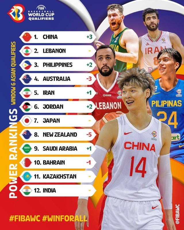 FIBA注释称:此排名是基于专栏作者个人观点,以及第五窗口期的表现而定的。