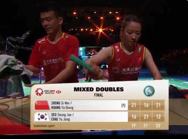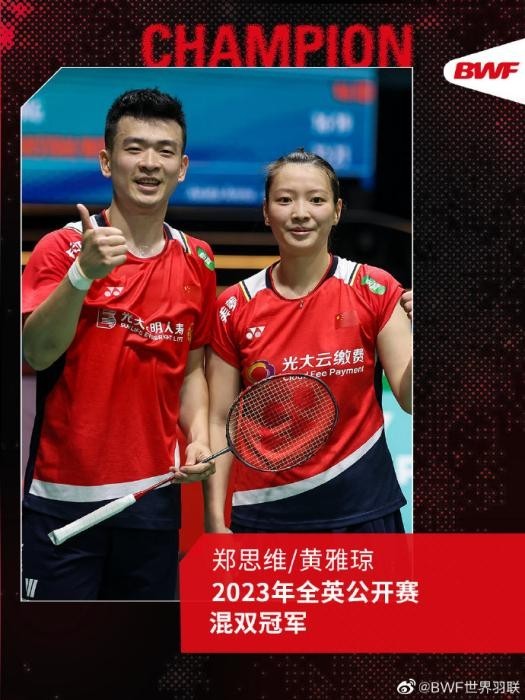 混双决赛被安排在第二场进行,“雅思”代表国羽率先登场。比赛中,作为头号种子的郑思维/黄雅琼以21:16、16:21、21:12,大比分2:1击败韩国组合徐承宰/蔡侑汀,继2019年后第二次夺得全英公开赛冠军。这也是两人继马来西亚1000赛后的赛季第二冠。