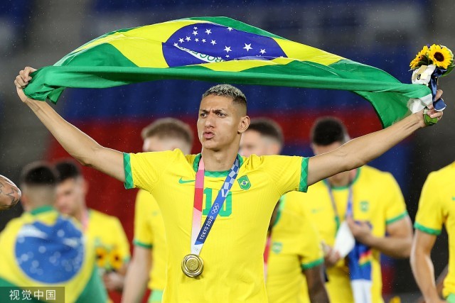 理查利森东京奥运会打进5球,帮助巴西队拿下金牌。