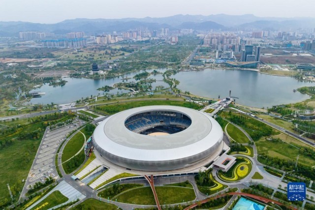 这是2023年4月17日拍摄的东安湖体育公园主体育场,成都大运会开幕式将在这里举行。新华社记者 沈伯韩 摄