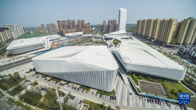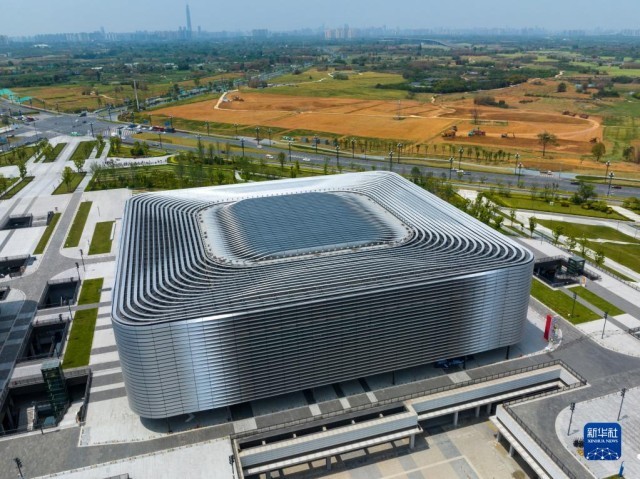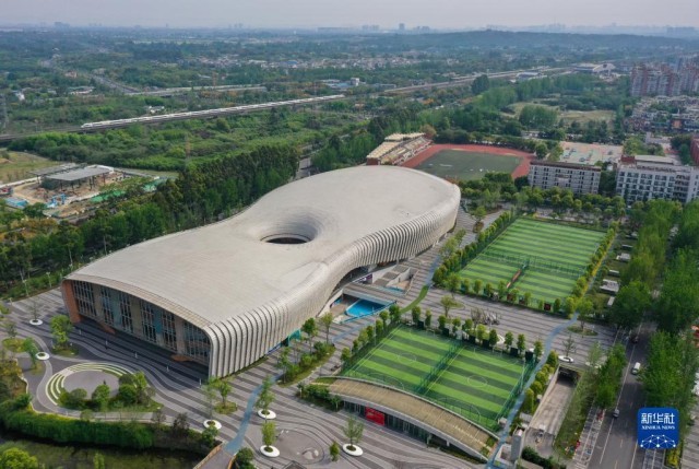 这是2023年4月17日拍摄的香城体育中心,成都大运会水球项目比赛将在这里举行。新华社记者 王曦 摄