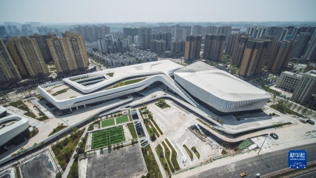 这是2021年10月22日拍摄的成都高新体育中心体育馆(左),成都大运会乒乓球项目的比赛将在这里举行。新华社发(成都大运会执委会供图)