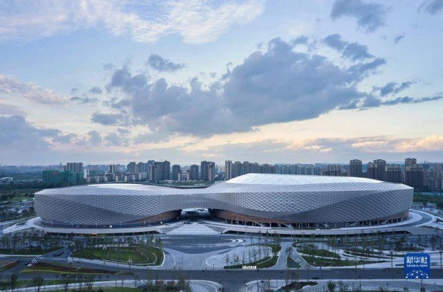 这是2022年8月26日拍摄的成都高新体育中心体育馆,成都大运会乒乓球项目的比赛将在这里举行。新华社发(成都大运会执委会供图)