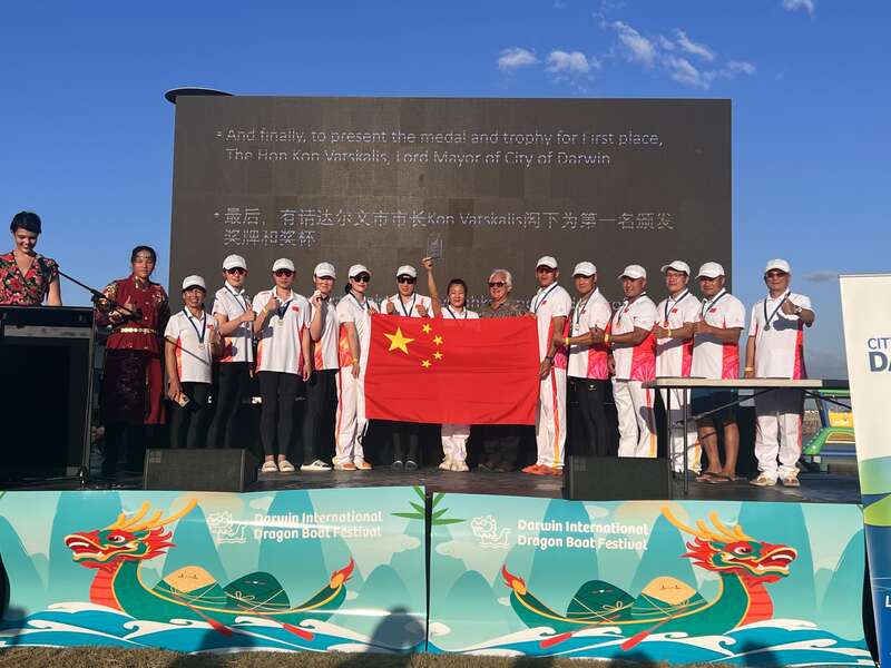 达尔文市是广州市的友好合作交流城市,位于澳大利亚北部。本届比赛,达尔文市政府邀请了11个友好城市参赛,经主办方选拔确认,最终包括中国广州(南沙)队、青岛队,澳大利亚南部及北领地队等5支队伍入围决赛。在决赛现场,广州(南沙)龙舟队以6轮循环积分赛皆获胜的成绩夺冠。