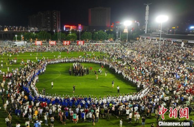 图为航拍贵州“村超”中场民族文化展演。韦贵金 摄